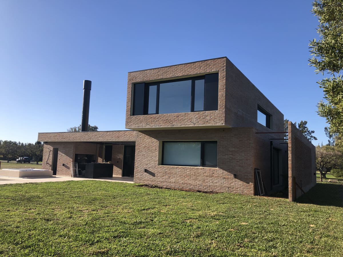 La obra inició con una platea en fundaciones acompañado con estructura de hormigón visto de vigas, columnas y losa en entrada vehicular y galería, con tabiques en sector de la parrilla continuando con la obra realizamos toda la mampostería y las terminaciones interiores y exteriores. En las terminaciones interiores se realizó colocación de porcelanato en todo los pisos y pintura blanca satinada en todas las paredes y techos. En las terminaciones exteriores se realizó revoque proyectable acompañado con revestimiento texturado tarquini color natural por otro lado en las entradas vehicular y peatonal se hizo un acabado de hormigón alisado con marmolina.